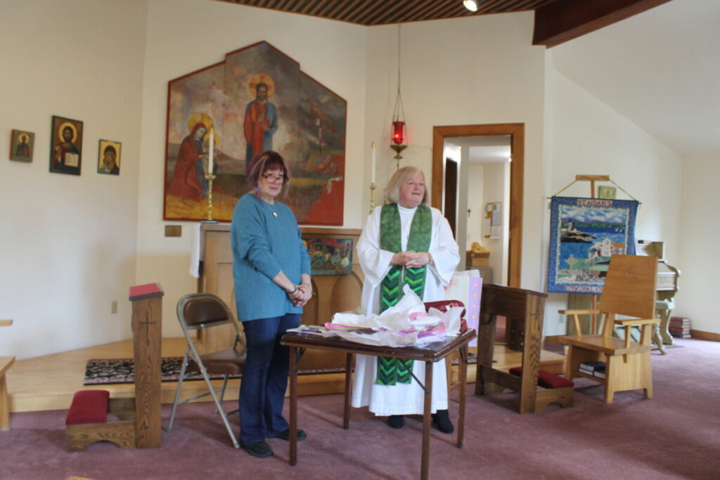 St. Aidan’s presents gifts to Lynn+ at our Annual Meeting just prior to a celebratory luncheon in the undercroft. Senior Warden Suzie O’Clair presented her with the gifts just before the meeting was adjourned. Lynn+ plans to travel the Holy Land in her retirement and the congregation gave her a backpack and umbrella to use in her travels.